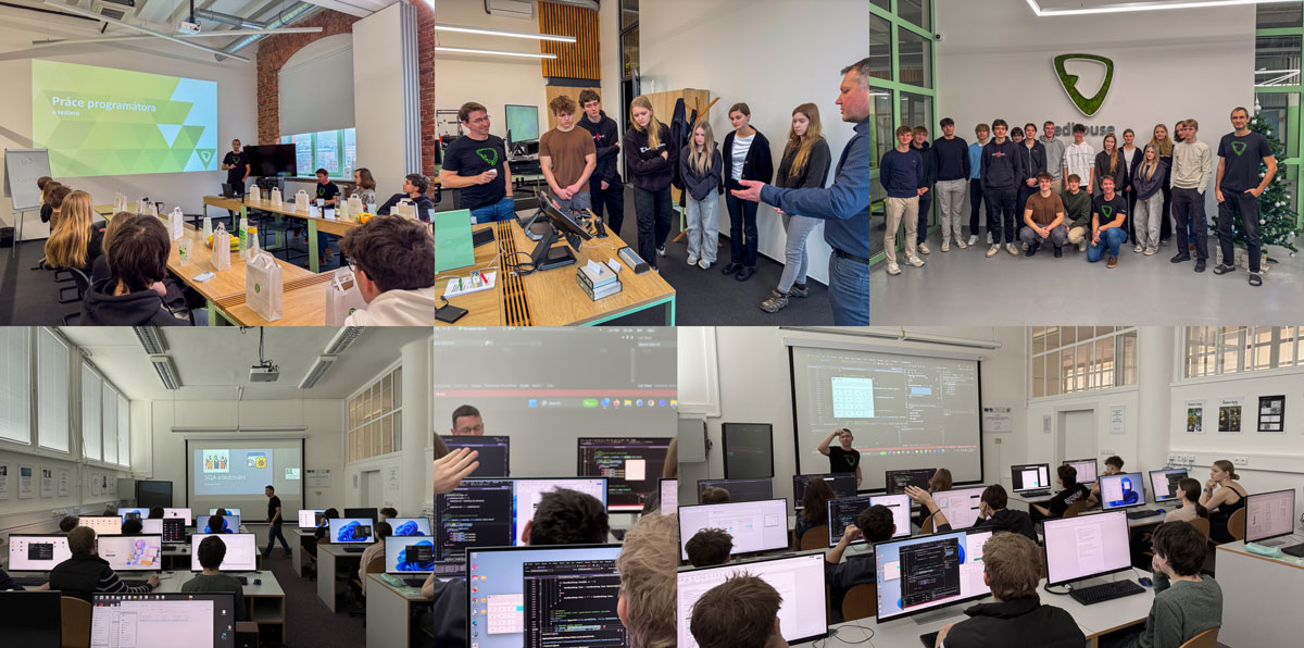 Jedním z témat, o kterém byla v rámci návštěvy firmy Edhouse řeč, bylo SQA (Software Quality Assurance), se kterým byli následně naši studenti seznámeni přímo u nás ve škole v rámci volitelného předmětu Cvičení z informatiky. Pan Radoslav Slovák (spolumajitel firmy Edhouse) připravil pro studenty dvouhodinovku o testováni software, ve které si studenti testovali a ladili okenní aplikaci v jazyce C#. Tuto výuku hodnotili studenti velmi pozitivně a mohli tak obohatit a zúročit nabyté vědomosti z široké nabídky informaticky zaměřených seminářů u nás na škole. Všechny v závěru potěšilo, když se dozvěděli, že: "Studenty tu máte moc šikovné a zvídavé. Je vidno, že děláte dobrou práci!"