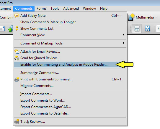 Po této operaci pak při otevření souboru v programu Adobe Acrobat bude k dispozici rozklikávací položka "Review & Comment". Ta je obdobná, jako v programu Adobe Acrobat a umožňuje tak člověku, který má k dispozici pouze Adobe Reader, možnosti komentářů a poznámek.