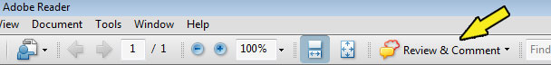 Rozbalovací nabídka "Review & Comment" v programu Adobe Reader