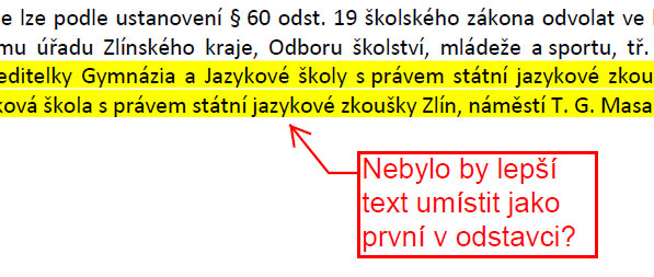 Pomocí těchto nástrojů můžeme do textu vkládat textové pole, šipky, obdelníky, elipsy atp. Na obrázku už vidíme kombinaci nástrojů. Nejdříve byl text označen nástrojem "Highlight" a poté k němu byla přiložen obdelník s šipkou, ve kterém je umístěn dotaz.