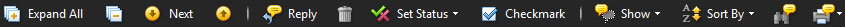 Následující lišta je součástí panelu Comments list a pomocí ní s panelem pracujeme. Lze tak jednoduše rozbalit všechny poznámky a komentáře nebo je opět sbalit, procházet postupně každý komentář a poznámku za sebou, seřadit si je, filtrovat, hledat, tisknout atp. Je to v podstatě takový organizátor poznámek a komentářů.