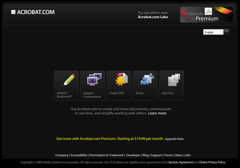 Pohlet na prostředí acrobat.com po přihlášení.