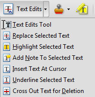 Přehled možností rozbalovacího tlačítka Text Edits.