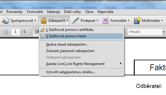 Nástroje pro nastavení hesla lze v aplikaci Adobe Acrobat najít na dvou místech: