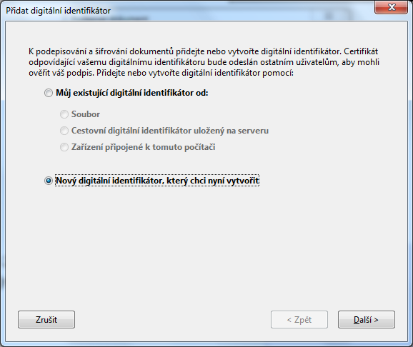 Pokud nenalezneme v seznamu požadovaný digitální identifikátor, je nutné jej vytvořit. Tento postup je následující:
