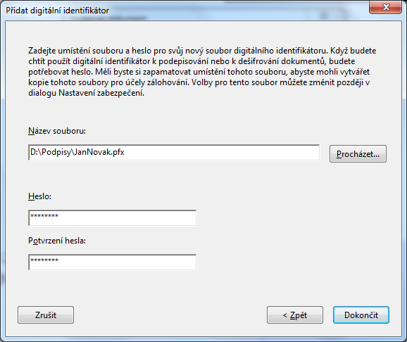 Druhou možností zabezpečení je zabezpečení pomocí certifikátu. Jedná se o vyšší formu zabezpečení, protože zde už (kromě znalosti hesla) je nutné mít k dispozici certifikát, pomocí kterého byl dokument zašifrován.