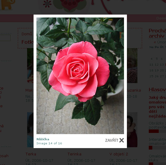 Funguje tak, že po kliknutí na obrázek se vám zatmaví okno prohlížeče a jednoduchým efektem se otevře fotografie ve větším rozlišením.
