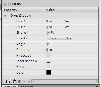 Po kliknut na prv pidan symbol se nm v panelu Properties objev monost Filters, kde ve spodn sti klikneme na volbu Add Filter a zvolme Drop Shadow. Hodnoty nastavme podle nsledujcho obrzku tak, aby iPhone vrhal lehk stn, kter vylep celkov grafick dojem.
