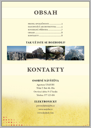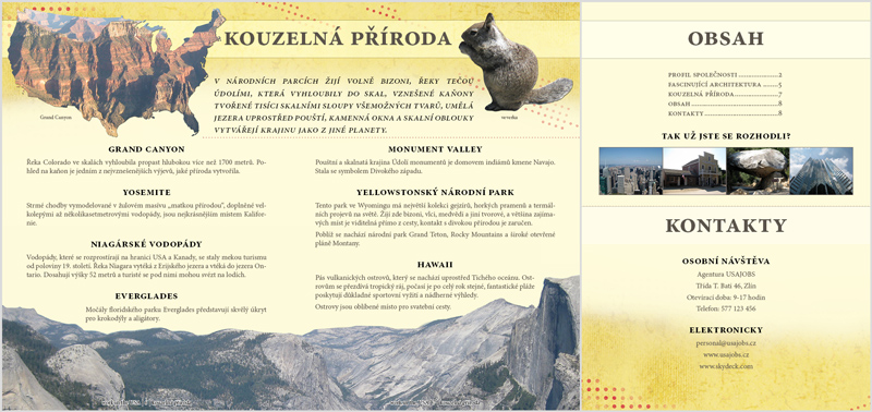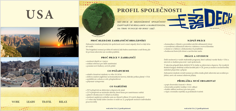 A nyní se pustíme do samotné tvorby, budeme vytvářet brožurku pro studijně-pracovní pobyt v USA, který nabízí jistá reklamní firma. Texty nabídek a výhod jsou vymyšlené, lze je samozřejmě libovolně nahradit.