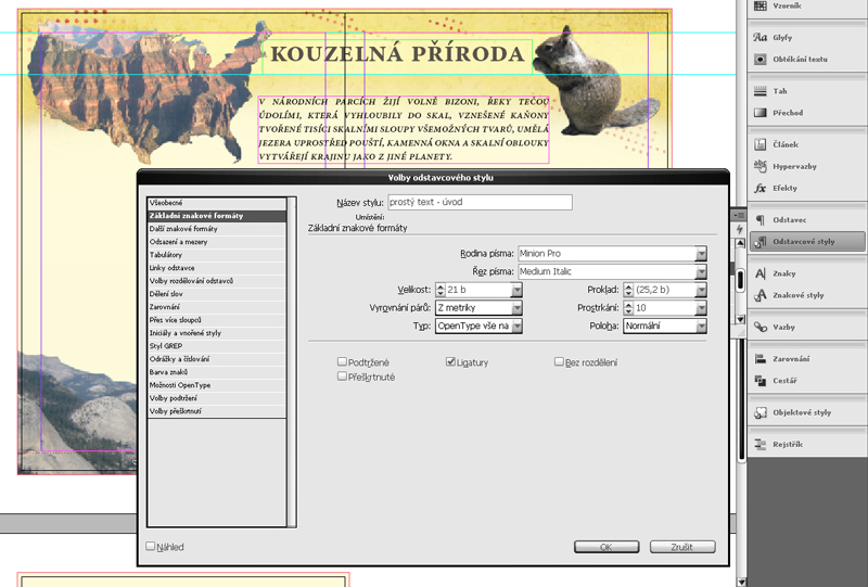 seznam všech dostupných Odstavcových stylů, v levém rámečku poté vidíme jen ty, které zvolíme pro obsah.