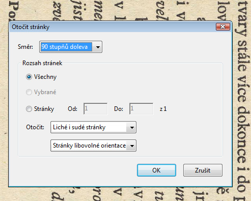 Ve zobrazeném okně Otočit stránky zvolíte směr otočení podle potřeby a asi vyberete v rubrice rozsah stránek položku všechny. Stiskněte tlačítko OK.