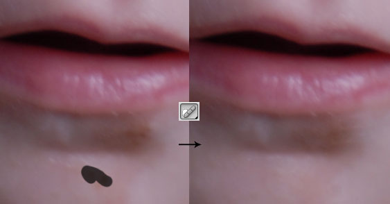 Nástrojem bodový retušovací štětec se pokusíme retušovat bradu a případně další problematická místa na obličeji.