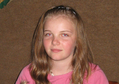 Dívka na obrázku vlevo má červené oči, které byly tímto nástrojem upraveny (obrázek vpravo).