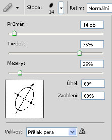 Nejobtížnější část nás čeká v podobě vrásek pod očima. Zde využijeme Retušovací štětec a nastavíme mu následující parametry: