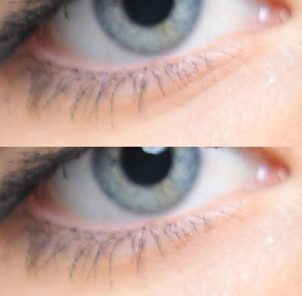 Při používání tohoto filtru je důležité nechat viditelnou pouze vrstvu, na kterou jej budeme používat a vrstvu s retuší. Díky filtru se celý obraz mírně rozostřil. Nicméně tato skutečnost není žádoucí v oblasti očí, obočí a rtů, které by měly zůstat ostré. Vytvoříme tedy do vrstvy s vyhlazení masku a tyto oblasti v ní vybarvíme černě.