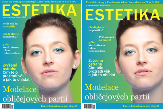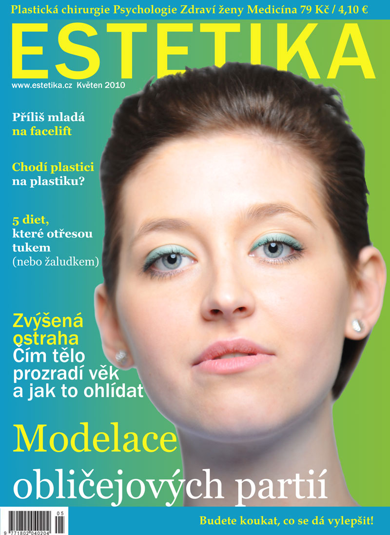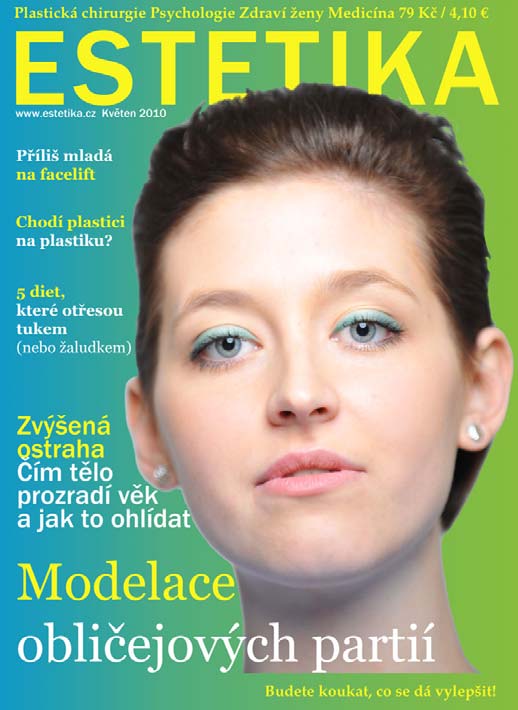 V této lekci se pokusíme vytvořit úvodní stranu časopisu ESTETIKA. Budeme upravovat obličej, vyřezávat hlavu z pozadí pomocí filtru Extract, odstraňovat vrásky a vady (pupínky, znamínka, jizvy, ...), zbarvíme rty, zjemníme pleť a jiné.