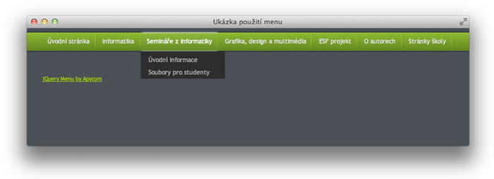 Soubory pro tuto ukázku najdeme v archivu apycommenu.zip. V tomto souboru najdeme pouze jednu variantu vzhledu tohoto menu. Další můžeme získat na webu www.apycom.com".