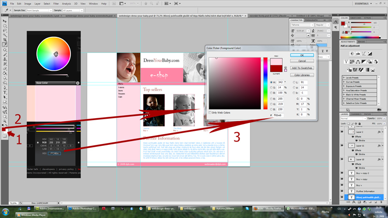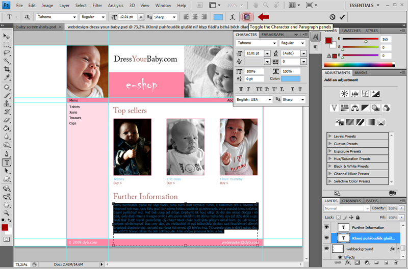 Jednotlivé části stránky (vrstvy) je dobré pro přehlednost a jednoduchost slučovat do skupin vrstev. Lze se tak snadno ve vrstvách orientovat případně je skrývat a znovu zobrazovat (máme například několik skupin s bannerem a rozhodujeme se, který použijeme).