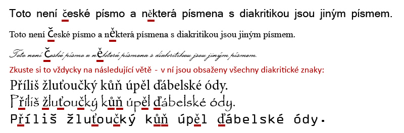Vybraný font by měl být vhodný pro daný typ stránky. Něměli bychom kombinovat velké množství fontů. Pozor také na to, aby font podporoval české znaky (písmena s diakritikou jsou často nahrazena písmeny z jiného fontu a výsledek je tak většinou přinejmenším problematický). Je možno volit ze zdarma dostupných písem na Internetu - ty ovšem většinou nemají diakritiku a je zde také otázka jejich typografické kvality.
