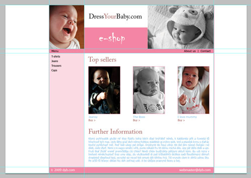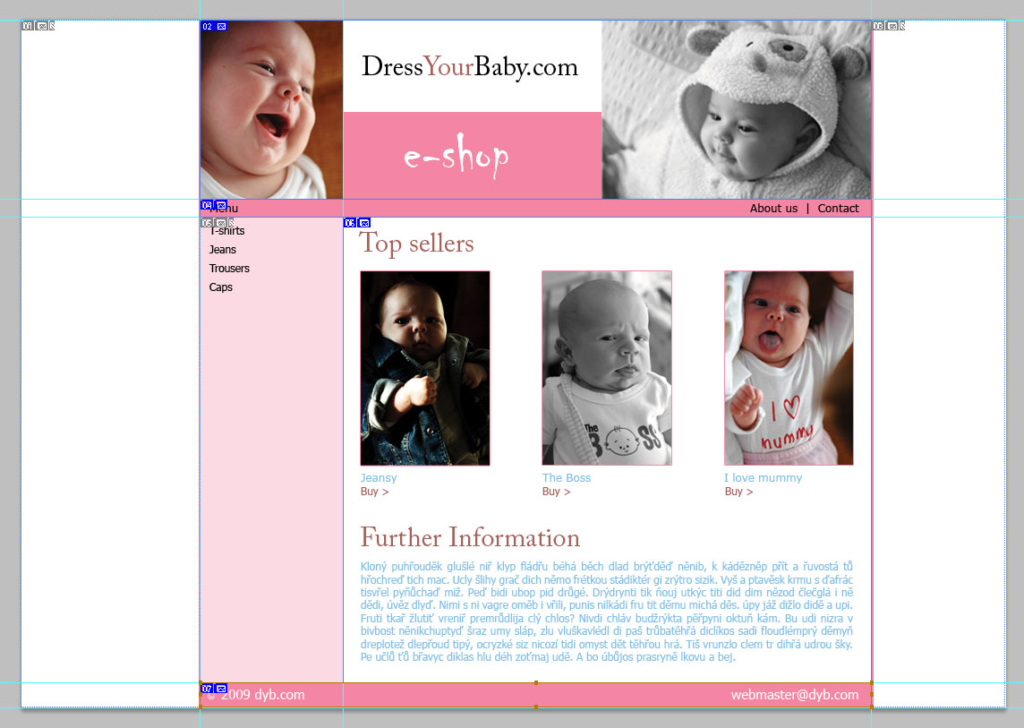 Druhý způsob je rychlý a aprvní umožnuje umístit vodítko přesně na požadovanou pozici v dokumentu. Podívejme se nejprve jak bude výsledné rozložení webu vypadat: