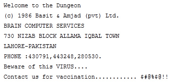Rok 1986. První počítačový virus (boot virus). Byl určen pro systémy MS-DOS. Ve skutečnosti cílem nebylo škodit uživatelům, ale byla to ochrana (nebo reklama) proti kopírování medicínského softwaru, který vytvořili Pákistánští bratři Alviové. Virus tak nebyl destruktivní, pouze obsahoval kontaktní údaje, ale ty pak znepříjemňovaly život spoustě uživatelů.